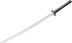 Мечът Classic Samurai на Boker се характеризира с голямо внимание към детайла и със сигурност ще ви впечатли от пръв поглед. Катаната разполага с острие от неръждаема стомана 440, което е полирано и има хамон (втвърдена линия). Цуба се състои от черен чугун с два големи отвора. Дръжката е класическа с подложка от риба манта. Месинговата секция му придава специален вид. Дървената ножница е покрита с кафяв лак и покритие в античен цвят. Характеристики: обща дължина: 105 cm дължина на острието: 69 cm дебелина на острието: 3 mm тегло: 1050 g материал на острието: въглеродна стомана 440А материал на дръжката: дърво ...