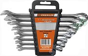 Звездогаечните ключове на Premium са подходящи при ремонти на автомобили, велосипеди, сглобяване на мебели и други. Комплектът се състои от 12 ключа, изработени от горещо щампована хром-ванадиева стомана и пластмасова стойка. Захват на ключовете: 6 mm 7 mm 8 mm 9 mm 10 mm 11 mm 12 mm 13 mm 14 mm 17 mm 19 mm 22 mm ...