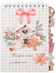 Коледната книга за рецепти от Реком е идеалното място, в което да съхраните както любимите си коледни рецепти, така и важна информация относно готвенето им. За лесно намиране на записаната информация, са добавени 6 декоративни тага. Кориците са декорирани с красиви и цветни картони. Характеристики: размери: 15 x 21.2 cm; корица: твърда; тип хартия: бяла; 162 страници; перфорация за лесно откъсване; вид: спирала. Важно! Продуктът е ръчно изработен, което прави всяка бройка уникална. Заради това са възможни леки разминавания в цвета и дизайна. ... |