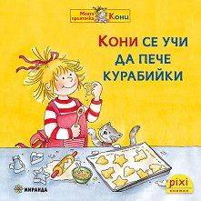 Кони иска да пече курабийки, но мама няма време. Така че Кони се захваща да ги направи сама. Трябва да се счупят яйцата, да се пресее брашното и да се спаси тестото от котето Мяу. Правенето на курабии не е толкова лесно, колкото изглежда. Добре, че мама идва на помощ накрая. С лесната рецепта на Кони е гарантирано, че и други малки пекари също ще успеят да направят тези вкусни курабии. Книжката е част от поредицата Моята приятелка Кони на издателство Миранда. ... |