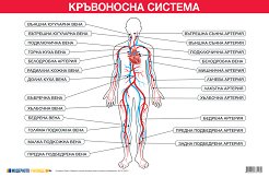Учебното табло "Кръвоносна система" е ламинирано и съдържа информация за: устройството на сърцето; кръвообращение; състав на кръвта; строеж на стената на кръвоносните съдове сърдечен цикъл. ...