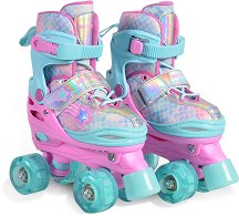 Ролковите кънки от BYOX са един елегантен начин да дадете шанс на вашето дете да покаже своите умения на колела. Освен, че са с интересен външен вид, те са и регулируеми, благодарение на което малчуганът ще може да им се радва по-дълго време! Те са подходящи за начинаещи и ще се харесат на всяко момиче, благодарение на атрактивния цветен дизайн. Обувката и шасито са направени да издържат на обикновено каране в градски условия, алеи и тротоари. Обувката е изработена от PVC, а вътрешността ѝ е от мека материя. Шасито има здрав скелет, а формата на глезена е анатомична. Размерите на обувката се регулират посредством ... |