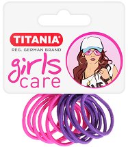 Ластици за коса от немската компания "Titania" са в комплект от 3 цвята. Цветовете са подходящи за светло и тъмно руси коси, ако държите ластика Ви да не се откроява. С тях можете да създадете разнообразни прически. Всичко зависи от Вашето въображение. Те се предлагат в различни размери. Малките са с дебелина около 1 mm и диаметър 3 cm в неразпънато състояние. Средните са с дебелина 3 mm и диаметър 4.5 cm, а големите са с дебелина 5 mm и диаметър също 4.5 cm. ... |