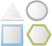 Комплектът огледала е в четири различни форми - кръг, триъгълник, квадрат и шестоъгълник, в различни цветове. Подходящи са за логопедични упражнения и занимания, като насърчават самоосъзнаването и наблюдателността при децата. Огледалата са оборудвани с повърхност от акрилно стъкло, което е здраво закрепено към рамка със заоблени ръбове, изработена от MDF плоскост с дебелина 12 mm, за по-голяма безопасност. Размерът им е 15 / 15 / 1.2 cm. ... |