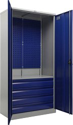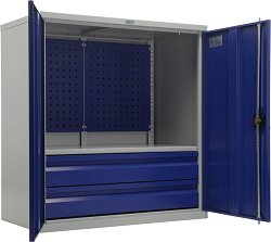 Шкафът на Практик от серията TC е предназначен за организиране на работното място в производствени предприятия, автосервизи и работилници. С него ще можете да съхранявате материали, консумативи, инструменти и други принадлежности. Изработен е от здрава разглобяема стоманена конструкция и е снабден с 2 врати, които могат да се заключват. Също така е оборудван с рафт и 2 чекмеджета. Шкафът е с размери 95 / 100 / 50 cm и максимална товароносимост 200 kg. Предлага се в комплект с екран за закачане на инструменти. Шкафът може да бъде оборудван с допълнителни аксесоари, които се закупуват отделно. Характеристики: ... |