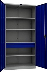 Шкафът от серията TC на Практик е предназначен за организиране на работното място в производствени предприятия, автосервизи и работилници. С него ще можете да съхранявате материали, консумативи, инструменти и други принадлежности. Изработен е от здрава разглобяема стоманена конструкция и е снабден с 2 врати, които могат да се заключват за повишена сигурност. Шкафът е оборудван с рафт и 4 чекмеджета, има размери 95 / 190 / 50 cm и максимална товароносимост 500 kg. Предлага се в комплект с екран за закачане на инструменти. Шкафът може да бъде оборудван с допълнителни аксесоари, които се закупуват отделно. ... |