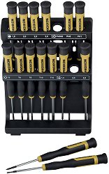 Мини отвертки, изработени от никел-хром-молибден (SAE 8660), което осигурява максимална здравина и дълъг експлоатационен живот на инструментите. Дръжката е от маслоустойчива и удароустойчива пластмаса. Отвертките са с хромиран накрайник и с въртяща се с капачка на дръжката, с удобна вдлъбнатина за показалеца. Размери на отвертките: права: 1.0 х 40; 2.0 х 40; 3.0 х 40 кръстата: РН 0-3 х 40; РН 0 х 40; РН 1-2 х 40 торкс: Т 5 х 40; Т 6 х 40; Т 8 х 40, Т 10 х 40; Т 15 х 40 имбус: 1.5 х 40; 2.0 х 40; 2.5 х 40; 3.0 х 40 ... |