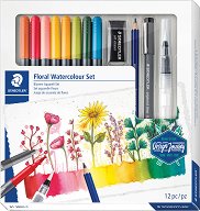 Комплектът Floral Watercolour от серията Design Journey на Staedtler е подходящ за рисуване върху различни видове хартия, оцветяване, скициране, създаване на красиви писма, поздравителни картички за различни поводи, покани и други. Той включва двувърхи акварелни флумастери, тънкописец Pigment Liner 308, графитен молив Mars Lumograph с твърдост 4B, четка с воден резервоар и гумичка. Единият връх на флумастерите е тип четка, което улеснява постигането на различни ефекти върху повечето акварелни хартии и скицници. Тънкописецът оставя линия с ширина около 0.1 mm. Той е подходящ за детайлни акценти, подчертаване ... |