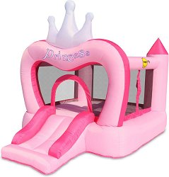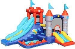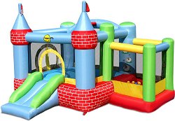 Батут за малки скокливи принцеси и принцове. Гарантира много смях, забавление и "скокливи" емоции. Замъкът е с четири кули, които се намират в ъглите на батута, и широк параден вход. Надуваемата крепост позволява воденето на множество "подскачащи" битки между малките благородници, които освен многото смях и забавление, ще поспортуват и подобрят своята координация. За да предотвратите появата на тъжни личица, трябва да внимавате общата маса на децата да не надвишава 55 kg. Конструкцията е от плътен винил, а надуваемите стени осигуряват комфорт и меко, безопасно приземяване. В кутията ще намерите ... |