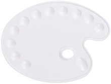 Пластмасова палитра с три ванички за боя. За удобство има дупки, където да поставите четки, а ваничките могат да се махат от сойката. След приключване на работа почистете с вода. ... |