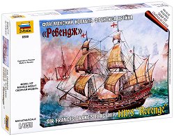 Умален модел на английския галеон HMS Revenge". Моделът е с дължина 12.5 cm Английският бързоходен галеон HMS "Revenge" е известен на широката общественост най-вече като флагманският кораб на сър Франсис Дрейк. "HMS Revenge" е построен през 1577 година, носи 46 оръдия и тежи около 400 тона. На 9 юли 1588 година в битката при Гравелин HMS "Revenge", считан за най-добрият кораб в английската армада, се доказва като достоен за славата си. Следвайки "HMS Revenge" начело на строя, английският флот се врязва във формацията на "Непобедимата Армада". Много испански кораби ... |