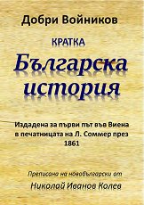 Издадена за първи път във Виена в печатницата на Л. Соммер през 1861 г. Преписана на новобългарски от Николай Иванов Колев. ... "Драги читателю, Ти държиш в ръцете си превод на съвременен български език на книгата от Добри Войников - "Кратка българска история" издадена за първи път през 1861 г. Във Виена у Книгопечати Л. Соммера.Тази книга, библиографска рядкост днес, е един изключителен паметник на българската култура. Преподавана в Априловската гимназия в Габрово и след това по цяла България, тази история е възпитавала онази генерация революционери, книжовници, индустриалци и държавници, която ... |
