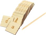 Ръкописни малки букви за проследяване от Неща с душа е образователен комплект, предназначен да се ползва в детско заведение или вкъщи под наблюдението на възрастен (учител, родител и т.н.). Съобразен е с методическите изисквания на педагозите и съответства напълно на учебниците и помагалата за първи клас. Буквите са разположени върху дървени плочки в начертани тесни и широки редове, като с точка е указано началото, а със стрелкички - посоката на изписване. Детето се учи да ги изписва като ги проследява със специален инструмент, който пасва в ръката на детето като пишещо средство, но не надрасква плочките, а ги запазва ... |