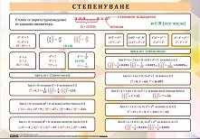 Учебното табло "Степенуване" е ламинирано, с лайсни и въже за закачане. Таблото е с размери 100 x 70 cm, съдържащо информация за свойствата и образуването на степени, както и определения и важни правила. ... |