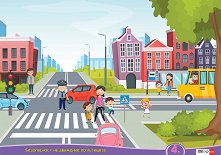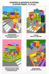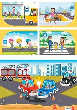 Комплектът включва 5 учебни табла по Безопасност на движението по пътищата за работа с деца във 2. група на детската градина. Темите на таблата са: табло № 1: Улицата; табло № 2: Светофар - мой другар; табло № 3: Улицата не е място за игра; табло № 4: Правила за пресичане; табло № 5: Моят велосипед. Табло № 3 е с размери 66.5 x 46.5 cm. Останалите табла са с размери 66 x 47 cm. Имат лайсни в горната и долната си част. По зададената тема има и задачи, с които да се провери и затвърди наученото. ... |