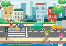 Комплектът включва 6 учебни табла по Безопасност на движението по пътищата за работа с деца в 3. група на детската градина. Темите на таблата са: табло № 1: Участници в движението; табло № 2: Познавам ли пътните знаци; табло № 3: Могат ли хората без превозни средства; табло № 4: Какво трябва да знае малкия пешеходец; табло № 5: Какво трябва да знае малкия пешеходец. Правила за безопасно пресичане; табло № 6: Какво трябва да знае малкия велосипедист. Всяко табло е с приблизителни размери 50 x 70 cm cm и има лайсни в горната и долната си част. По зададената тема има и задачи, с които да се провери и затвърди ... |