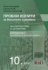 Помагалото Пробни изпити за външното оценяване в 10. клас. Български език и литература и математика с интегриране на други учебни предмети включва два раздела и съдържа общо четиринайсет теста. Първият раздел съдържа седем цялостни теста върху целия изпитен материал по български език и литература за Националното външно оценяване. Тестовете са в две части и следват точно формата на изпита. Във втория раздел има седем пълни теста върху целия изпитен материал по математика за НВО с добавени задачи по биология и здравно образование, химия и опазване на околната среда, физика и астрономия и география и икономика. Всеки ... |