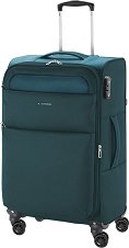 Пътническият куфар от "Gabol" е чудесен за бизнес пътувания или екскурзии. Той е изработен от полиестер и EVA пяна. Куфарът разполага с 1 основно отделение и 2 предни джоба, затварящи се с ципове. В основното отделение ще откриете голям мрежест джоб, който се затваря с цип, подходящ за съхранение на лаптоп, таблет или документи, а също така и 2 колани с катарами, чиято функция е да държат багажа здраво. Също така куфарът има подплатена дръжка за носене в ръка, издърпваща се телескопична дръжка, колелца и вградено заключване с код против кражба, която ще държи циповете на едно място. Характеристики на куфара: ...