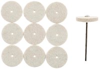 Комплект 10 броя дисковете предназначени за довършителна обработка с полираща паста на метал, злато, сребро, цветни метали, месинг, алуминий. Размер на полиращата глава - 22 mm; шпиндел - ∅ 2.35 mm. ... |
