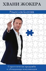 Стратегически продажби и убеждаваща комуникация. ... Хвани Жокера е безценен инструмент за постигане на високи цели в бизнеса, маркетинга, продажбите. Книгата се основава на огромния практически опит, дълбочинни целенасочени изследвания и анализи на автора Радослав Благоев. Тя ще ви научи да бъдете стратези, да мислите извън рамката и да реализирате резултати, които сте смятали за непостижими. Радослав ще ви направи по-успешни комуникатори, ще ви покаже как да продавате по-лесно и бързо, а клиентите ви да бъдат по-удовлетворени отвсякога. Той е експерт по ефективни продажби, стратегически маркетинг, убеждаваща ... |