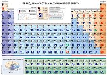 Периодична система на химичните елементи - дългопериоден формат за 9. клас, 10. клас, 11. клас и 12. клас по химия. Голямата периодична система на химичните елементи е двустранно ламинирана, със стабилни лайсни в горния и долния край и е с размери 140 x 100 cm. ... |