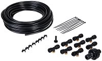 Системата за водна мъгла е идеалният начин за охлаждане през горещите летни месеци. Монтирайте я на шатра, чадър или навес и намалете температурата с до 10°C. Системата за водна мъгла е и ефективен способ за борба с насекоми и мръсотия. Насекомите избягват водната мъгла, защото тя полепва по крилата им. Комплектът е подходящ за овлажняване и филтриране на въздуха, при падането си микрокапките улавят мръсните частици във въздуха и ги свалят на земята. Системата за охлаждане е с ниска консумация на вода - при налягане 2 bar, всяка дюза ще изразходи около 1.8 l вода на час. Съдържание на комплектите: система с дължина ... |