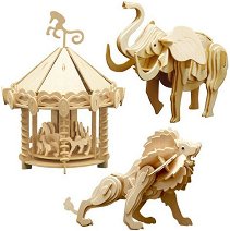 Комплектът от "Pebaro" е изработен от дърво и съдържа 4 пъзела с различни елементи за сглобяване на слон, лъв и въртележка. След като сглобите моделите, ще можете да оцветите елементите им с боички и четка. Брой елементи на пъзелите: слон - 53 елемента лъв - 57 елемента въртележка - 137 елемента Съвет: За по-лесно нареждане не отделяйте всички части от таблата наведнъж. Започнете с тези, на които пише цифрата 1, или отделяйте частите по двойки, една по една. Съединете ги заедно на местата, на които е отбелязана една и съща цифра. ... |