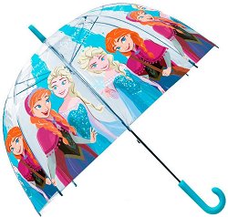 Дъждовните дни ще бъдат по-усмихнати и забавни с чадъра на Елза и Анна от Замръзналото кралство! С ефектни декорации и удобна дръжка, той ще защити вашето дете, когато навън вали. А практичната му форма го прави удобен за хващане и носене от малките детски ръчички. Чадърът е изработен от PVC и метал. Подходящ е за деца над 3-годишна възраст. Чадърът е с размер ∅ 46 cm. ...