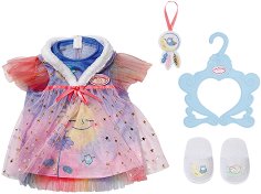 Облеклото е част от серията Baby Annabell, където може да намерите още интересни аксесоари за кукли. ... Децата ще се погрижат за своята кукла с роклята от Zapf Creation. Тя разполага с декоративни детайли от тюл, звезди и плюшената яка. Към роклята са включени чехли и капан за сънища. Облеклото е с размер 43 cm и е подходящо за кукли с височина 39 - 46 cm. Важно: Куклата, показана на допълнителните снимки, се предлага отделно. ... |