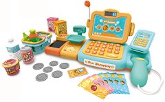 В игрите на почти всяко дете присъства пазаруването. Те винаги намират какво да купят или пък какво да продадат. Затова от Buba предлагат касов апарат, който ще направи играта на децата много по-интересна и реалистична. Към комплекта са включени касов апарат, монети и банкноти, кредитна карта и различни продукти за пазаруване. Апаратът разполага със звукови ефекти и калкулатор. Касовият апарат разполага с бутон, който при натискане ще отвори касата. Също така, детската играчка разполага с баркод четец, монетник, кантар и калкулатор. Елементите са изработени от пластмаса и са подходящи за активна игра. Играта с ... |