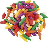 Комплектът представлява образователен инструмент, създаден за развитие на основни математически и логически умения при децата в ранна възраст. В него са включени различни по форма и цвят пластмасови фигурки, изобразяващи зеленчуци като моркови, царевица, краставици, чушки и други. Тези фигурки са специално проектирани, за да бъдат удобни за хващане от малки детски ръце, като същевременно привличат вниманието с ярките си цветове и реалистичен външен вид. Комплектът дава възможност за широк спектър от дейности - сортиране по вид, цвят или размер, преброяване, създаване на логически редици, съвпадения и сравнения. Чрез игра ...