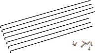 Черни стоманени спици "Inox" от "Crosser" с месингови нипли с дължина 14 mm и диаметър ∅ 3.2 mm. Характеристики: материал - стомана резба - 2 mm височина на главата - 6.2 mm материал на ниплите - месинг дължина на ниплите - 14 mm диаметър на ниплите - ∅ 3.2 mm тегло за 144 броя - 2.016 kg ...