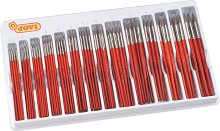 Четките от "Jovi" имат висококачествена дървена дръжка, лакирана със защитен лак и естествени косъмчета от пони. Те са подходящи за рисване с акварелни и темперни бои. Комплектът съдържа 144 броя кръгли четки с различен размер от №00 до №12. Той е подходящ за училищни или развлекателни дейности и ще осигури часове творческо забавление за малки и големи. С него децата ще имат безкрайни възможности за рисуване и развиване на креативността си. ...