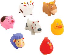 Комплектът от LUDI ще бъде чудесен подарък за вашето бебе, с който ще се запознае с някои от основните цветове и животните от фермата. Той съдържа 7 фермерски животни - пиле, пате, куче, кон, пони, крава и прасе. За да е още по-забавна играта, всяко едно от тях пръска вода при стискане. Размерите на всяка една от играчките са 3.2 / 6.4 / 9 cm. Могат да се почистват с влажна кърпа. ... |