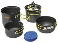 Комплектът с туристически съдове за готвене на "Pinguin" е лек и компактен, предназначен за приготвянето на храна за двама души. Съдовете са изработени от лек, но същевременно много здрав анодизиран алуминий. Всички съдове са с огнеупорни и имат устойчиво на износване покритие. Дръжките са конструирани така че да се прибират плътно към съдовете, за да не заемат място. За да бъдат максимално удобни за транспортиране съдовете се събират един в друг, като комплекта е е адаптиран и за съхранение и транспортиране на газова бутилка 230 ml и малък газов котлон. Газовата бутилка и котлона на са включени в комплекта. ... |