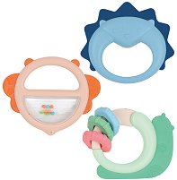 Комплектът от LUDI съдържа 3 броя дрънкалки с гризалки. Дрънкащите елементи стимулират слуха на бебето и задържат неговото внимание, а елементите - гризалки по дрънкалките облекчават венците при никнене на първите зъбки. Размерите на дрънкалката таралеж са 9.5 / 8.3 / 2 cm, на охлюва са 9 / 7 / 3 cm, а на пеперудата са 10 / 8 / 2.5 cm. ... |