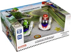 Играчката е на тема Super Mario, където ще намерите още интересни комплекти. ... Марио и Луиджи – емблематичните братя от света на видеоигрите – се впускат във вълнуващи надпревари с този атрактивен комплект пулбек колички от Carrera. Създаден специално за малки и големи фенове на Mario Kart, комплектът пренася динамиката и забавлението от виртуалните състезания директно в детската стая. Количките са в мащаб 1:43 и разполагат с практичен pull-back механизъм – достатъчно е да ги издърпате назад и да ги пуснете, за да потеглят напред с впечатляваща скорост. Детайлната изработка, ярките цветове и разпознаваемият дизайн на ...
