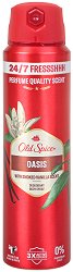 Спрей дезодорантът Oasis от Old Spice притежава завладяващ аромат, който ще ви зареди с енергия. Той осигурява ефективна защита от появата на неприятни миризми и свежест до 48 часа*. Формулата е грижовна към кожата и е без съдържание на алуминиеви соли. Освен това не оставя жълти петна по белите дрехи и бели следи върху черните. Спрей дезодорантът Oasis има топъл ориенталски аромат на опушена ванилия и кехлибар. * Според производителя. ...