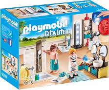Комплектът е част от серията "City life", където можете да намерите още конструктори, комплекти и фигурки по темата. ... Комплектът от "Playmobil" се състои от всичко необходимо, за да обзаведеш своята куклена къща. Той включва 2 мивки, душ кабина, кантар, тоалетна чиния, сешоар, фитнес уред, работеща лампа, аксесоари, както и 2 фигурки. Човечетата имат подвижни ръце, а краката им се сгъват, за да може да се навежда или сяда. Лампата работи с 1 брой батерия 1.5V AAA, която се закупува отделно. ... |