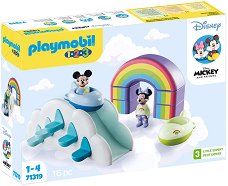 Конструкторът е част от серията Playmobil 1.2.3, където ще намерите още интересни комплекти. ... Добре дошли в облачния дом на Мики и Мини Маус! Пригответе се за вълнуващи приключения с конструктора на Playmobil. Той се състои от 16 части, които включват 2 мини фигурки на Мики и Мини Маус, облак, 2 самолета, дъга, кубчета и дъждовни капки. Дъгата може да се конструира в арка с помощта на кубчетата, но може и да се трансформира в люлка за двете фигурки. Също така може да се постави върху облака. Облакът има отваряща се врата от едната страна с изображение на слънце, а от другата има място за поставяне на дъждовните капки, ... |