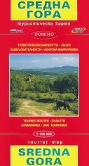 На български и английски език. Проверена с GPS. Туристически маршрути, хижи, забележителности, лентова маркировка. ... Средна гора е разположена между Задбалканските котловини на север и Горнотракийската низана на юг. На запад се простира до долината на река Искър, а на изток - до завоя на река Тунджа северно то град Ямбол. Приблизителните ѝ разбери са 250 km от запад на изток и 50 km от север на юг. Характеристики на туристическата карта на Средна гора: Размери на сгъната карта: 12.5 x 22.5 cm. Размери на разгъната карта: 100 x 67.5 cm. Мащаб на картата на Средна гора М 1:100 000. Информация на български и ...