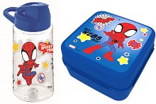 Комплектът е част от серията Спайдърмен, където ще откриете още продукти и аксесоари по темата. ... Детският комплект на Спайдърмен е подходящ за деца над 3-годишна възраст. Той се състои от кутия за храна и шише за вода. Кутията се затваря здраво посредством закопчалка, а бутилката разполага с удобно затварящо се въртящо капаче с вградена сламка. Елементите са изработени от полипропилен и са подходящи както за детска градина и училище, така и за разходка в парка и ученически екскурзии. Размерите им са компактни и ще се поберат лесно в детската ученическа раница или чанта за детска градина. Шишето е с вместимост 500 ... |