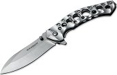 Джобният нож Slender на Boker притежава изключителна ергономичност, силно перфорирана дръжка, ниско тегло и здрава конструкция. Острието, изработено от устойчива на корозия стомана 440А се застопорява с механизъм Framelock и се отваря чрез флипер, който улеснява удобното отваряне с една ръка. Ножът разполага с клипс и отвор за ремък. Характеристики: дължина на острието: 8.8 cm дължина на ножа: 21 cm дебелина на острието: 2.7 mm материал на острието: 440A стомана материал на дръжката: неръждаема стомана ръчно отваряне с флипер заключване: Framelock тегло: 112 g ... |