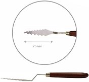 Шпаклата за рисуване номер 5 от серията Studio на Rosa има гъвкаво стоманено острие с дължина 7.5 cm и дръжка от естествено дърво. Острието е с назъбена форма. То е здраво фиксирано към дръжката с метален пръстен. Шпаклата е идеална за работа със структурни пасти и гелове и в зависимост от формата си е подходяща при използването на различни техники в рисуването с акрилни и маслени бои - издърпване и разпространение на цвета директно върху платното, напластявания, създаване на различни текстури, както и текстури създадени с помощта на медиуми, получавайки поразителни живописни и материални ефекти. Също така ... |