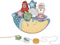 Търсите ли играчка, която съчетава баланс и низане в едно? А вашето дете обича ли да изследва Космоса? Може да го направи със занимателната игра от Tooky Toy – специално създадена за малките астронавти! Комплектът включва 10 цветни дървени блокчета с космически мотиви – ракети, астронавти, звезди, НЛО и планети, лунна платформа със симпатично усмихнато лице, върху която блокчетата се подреждат, както и дървена игла със здрав шнур за нанизване. След приключване на играта за баланс превърнете блокчетата в цветни мъниста и ги нанижете на шнура, за да упражните фината моторика, концентрацията и творческото мислене. ...