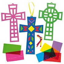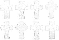 Изработените от пластмаса фигурки са разделени на сектори, така след оцветяването на всяка от тях, вече готовата декорация ще напомня на шарен и весел или стилен витраж. С готовите фигурки ще имате възможност да направите чудна тематична украса. За да украсите кръстчетата може да използвайте бои за стъкло, порцелан или други гладки повърхности и брокати. Изработените от пластмаса фигурки се предлагат в комплект от 8 броя, в 4 различни дизайна, с черно шнурче за закачане с дължина около 80 cm. Техните размери са около 4.5 / 6.3 / 3 cm. ... |