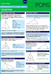 Геометрия. ... Помагалото по геометрия Математика с един поглед е предназначено за ученици от 5. клас, 6. клас и 7. клас. То е под формата на дипляна във формат А4, което улеснява и ускорява проверката на наученото, а ламинирането го прави удобно, здраво и годно за дълготрайна употреба. В изданието присъстват темите: съседни ъгли; връхни ъгли; ъгли, получени при пресичането на две оправи с трета; успоредност на прави; триъгълник; еднаквост на триъгълници; симетрала; ъглополовяща; равнобедрен триъгълник; равностранен триъгълник; правоъгълен триъгълник; питагорова теорема; питагорова тройка числа; ... |