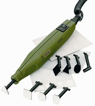 Движението на мини шлайфа е линейно, а не кръгообразно, което го прави подходящ за най-фина обработка на труднодостъпни повърхности, прорези, малки ъгли и др. Корпусът на инструмента е изработен от полиамид, подсилен с фибростъкло. Шлайфът е в комплект със 7 броя шлифоващи накрайника и 3 листа шкурка с различна зърненост - Р 180, Р 240 и Р 400. За използването на уреда ще ви е необходим трансформатор, който се закупува отделно. Препоръчва се използването на трансформатори NG 2/S или NG 2/E. Характеристики: захранване: 12 - 18 V скорост: 8000 цикъла/min дължина на хода: 2.5 mm дължина на уреда: 160 mm тегло: ... |