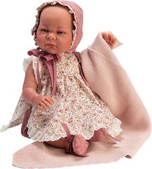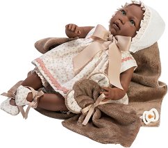 Куклата Лара от Asi е част от лимитирана серия от 400 броя, създадена да пресъздаде максимално реалистичния образ на новородено бебе. Тя е висока 46 cm и тежи около 1400 g. Изработена е с меко текстилно тяло и винилови крайници, които придават естествено и нежно усещане при допир. Липсата на коса засилва естествения ѝ вид. Лара има големи неподвижни очи с дълги мигли и фино очертани вежди, ръчно изрисувани за по-голяма автентичност. Главата ѝ е декорирана с издълбани линии, имитиращи къса коса на новородено. Тези детайли правят куклата изключително реалистична. Облечена е в красива рокля с флорални мотиви, ... |