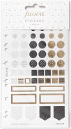 Самозалепващите стикери от Filofax са проектирани да се комбинират с продуктите от серията Moonlight. Те са задължителен аксесоар за всеки любител, който планира и организира задачите, плановете и целите си. Могат да бъдат използвани в организиране и акцентиране на документи и записки, или за декорирането на албуми, писма, покани, картички, книги, папки, подаръци и много други скрапбукинг проекти. Върху самозалепващите стикери може да се пише с гел химикали или тънкописци. Комплектът включва 6 листа с общо 315 стикера с 2 красиви дизайна в минималистичен стил в бял, черен и златист цвят. ... |